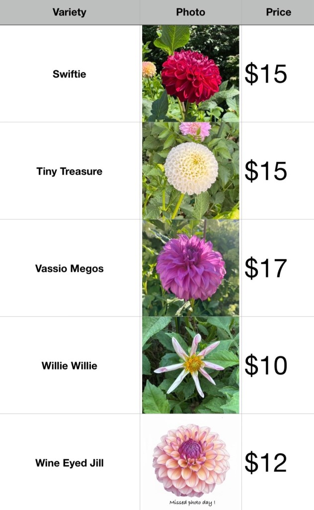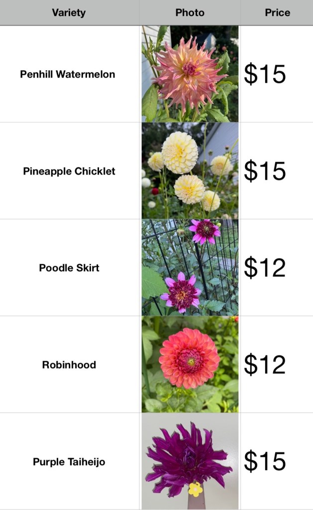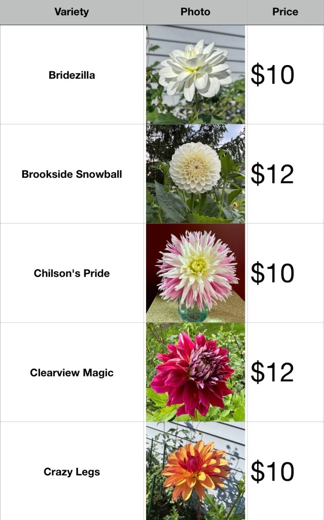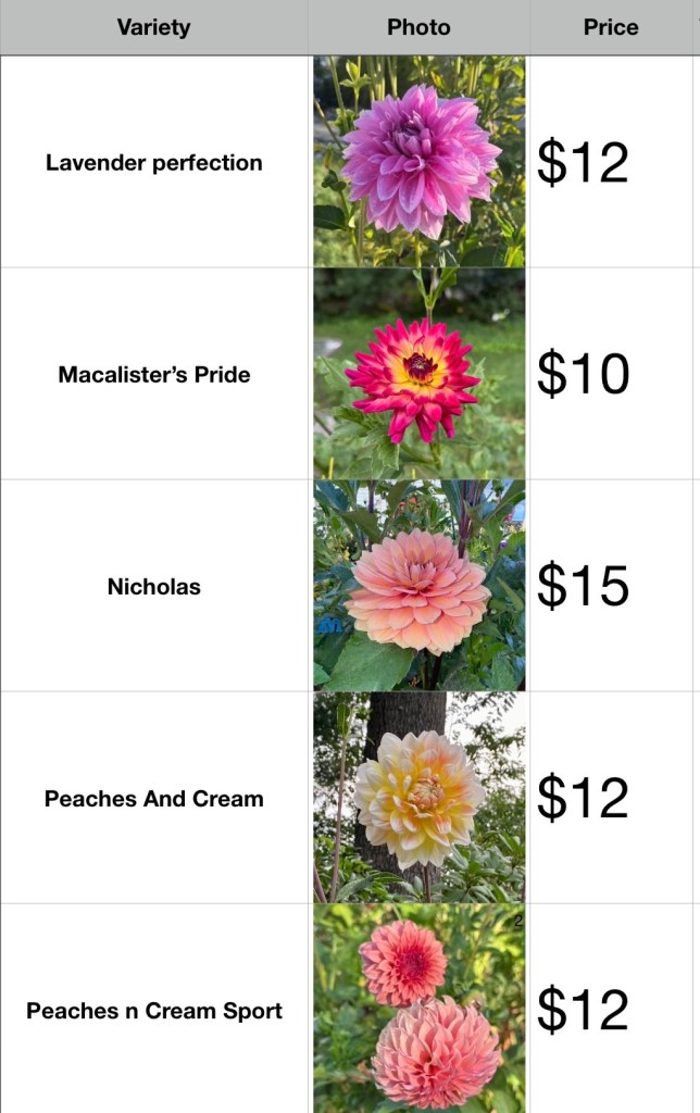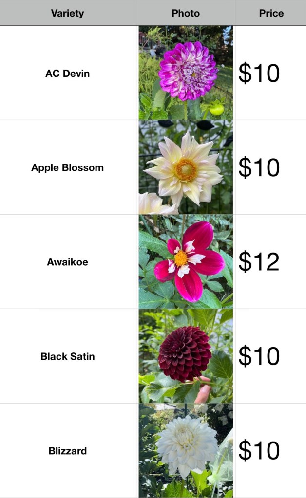 Please email us the dahlia tuber(s) you would like to purchase, and we will send you a link to purchase the tuber(s). $10 shipping will be added on the link of your purchase.